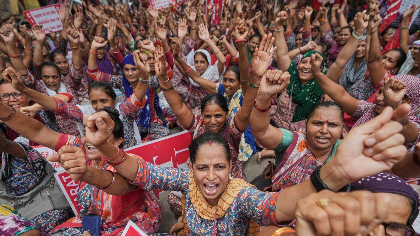 “Working hours of laborers, and the benefits they used to get in their jobs after years of struggle, all those benefits have been given away to the capitalists and industrialists by the government,” Pratholi said, without elaborating.