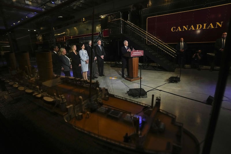 Prime Minister Mark Carney speaks from a lectern beside a Canadian Pacific locomotive at the Canada Science and Technology Museum during an announcement on the Canada Strong Fund, Canada's first sovereign wealth fund, in Ottawa on Monday, April 27, 2... Prime Minister Mark Carney speaks from a lectern beside a Canadian Pacific locomotive at the Canada Science and Technology Museum during an announcement on the Canada Strong Fund, Canada's first sovereign wealth fund, in Ottawa on Monday, April 27, 2026. THE CANADIAN PRESS/Justin Tang