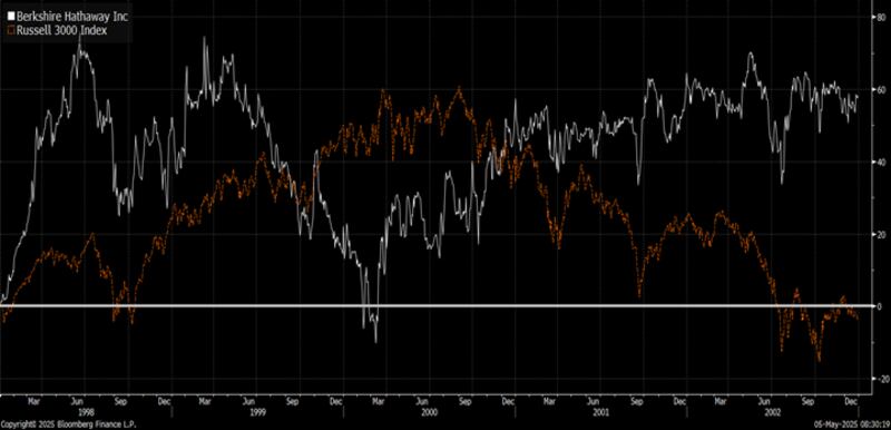 One could argue that a better benchmark should be a global equity index or better a global balanced fund. In recent years, Buffett has been a big buyer of Japanese stocks. Berkshire has done much better versus a world benchmark or a 70:30 balanced fund benchmark.